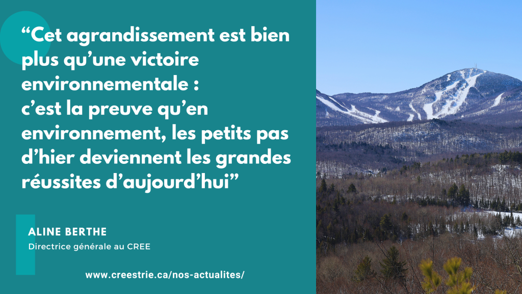 Le Conseil régional de l’environnement de l’Estrie salue l’agrandissement du parc national du Mont-Orford et la mobilisation citoyenne qui l’a rendu possible.
