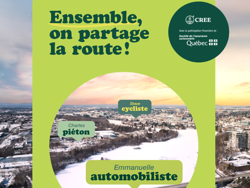 En 2026, le Conseil régional de l’environnement de l’Estrie (CREE), avec la collaboration de la Société de l’assurance automobile du Québec (SAAQ), déploie une campagne de sensibilisation routière intitulée « Cycliste, piéton(ne), automobiliste ? Humain avant tout ! ». Cette initiative vise à promouvoir un meilleur partage de la route entre les différents usagères et usagers, en mettant de l’avant des comportements sécuritaires, respectueux et empathiques.