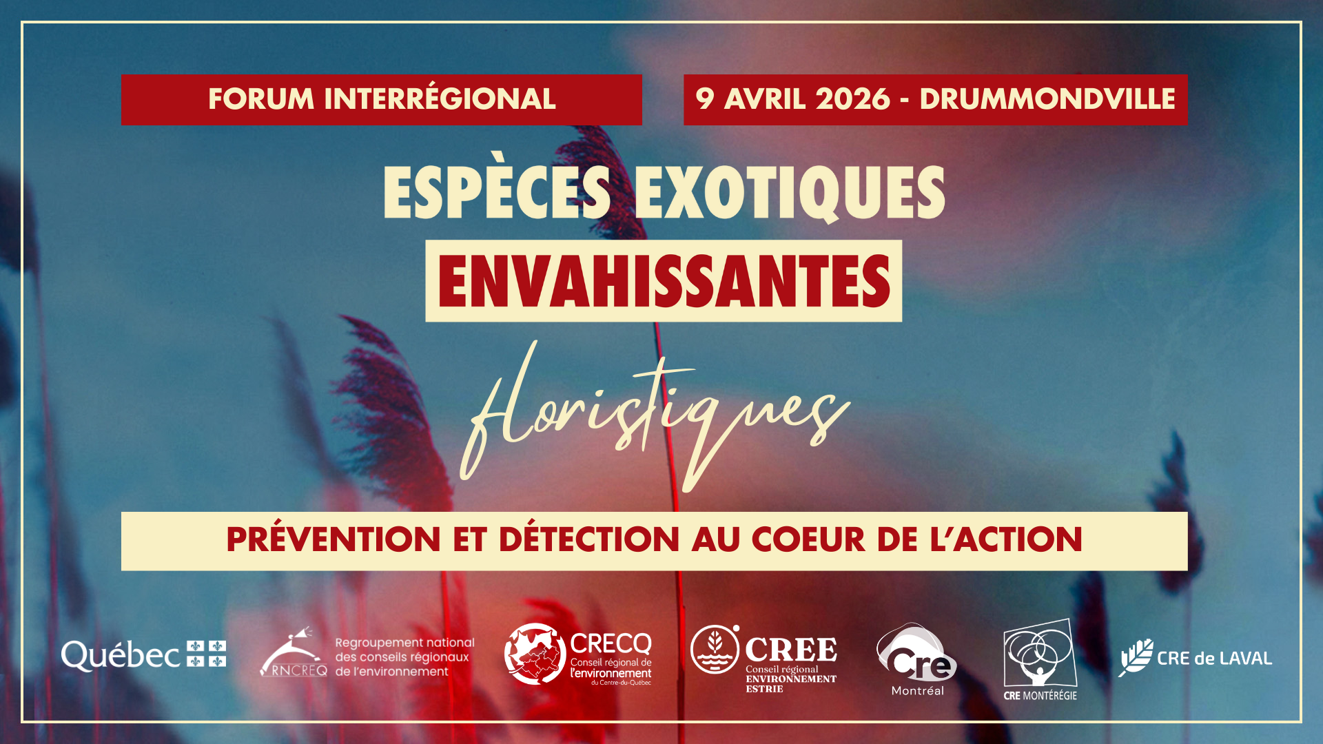 Les CRE de l’Estrie, du Centre-du-Québec, de la Montérégie, de Montréal et de Laval coorganisent le forum interrégional sur les EEE floristiques, un événement de sensibilisation et de discussion sur la prévention contre les espèces envahissantes.